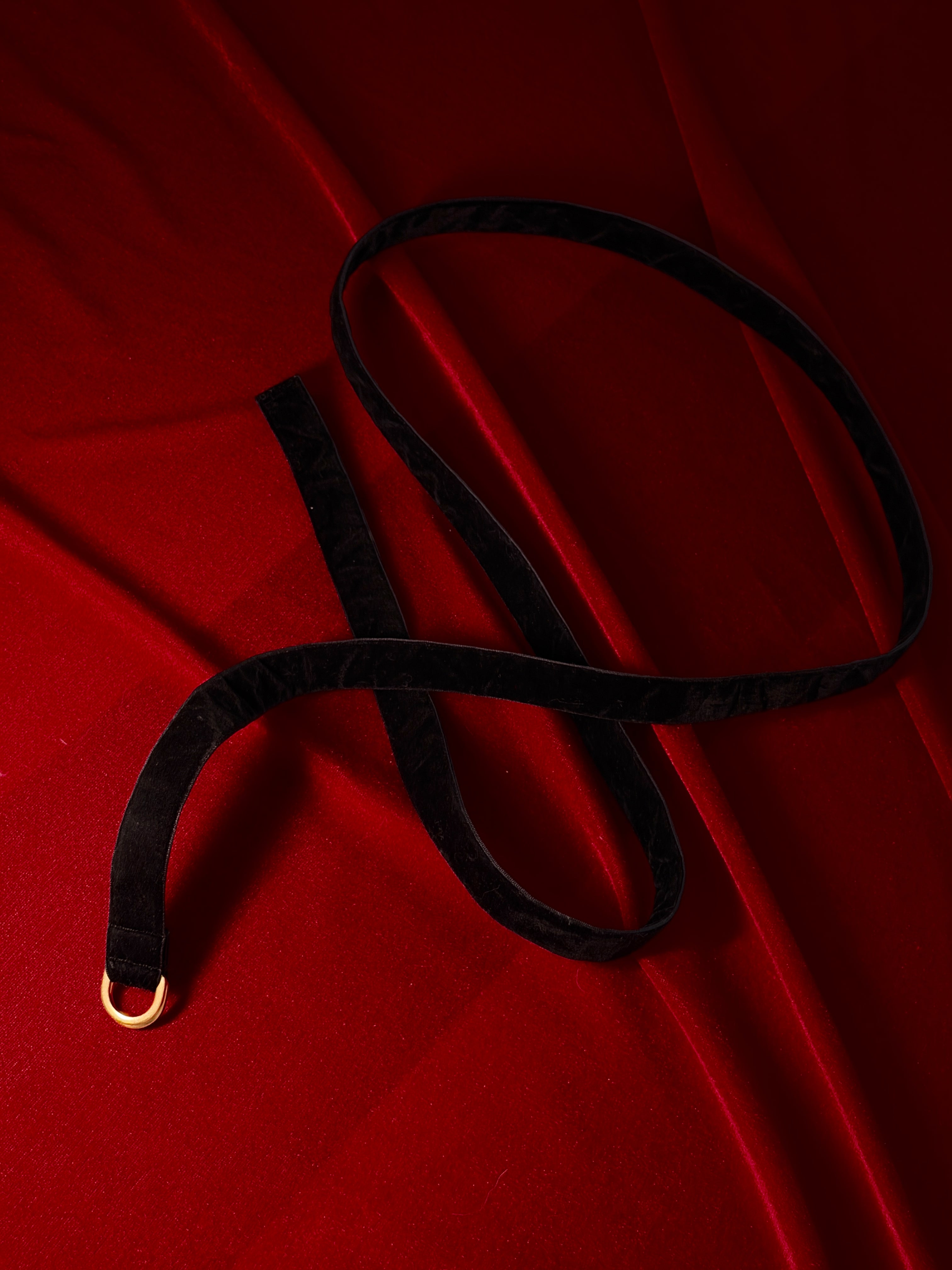 A handcrafted dual-stitch velvet body harness that blends wearable style with intimate allure.